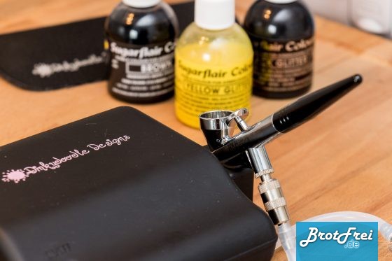 - Airbrush Gerät für Lebensmittelfarbe (meins ist von Dinkydoodle)