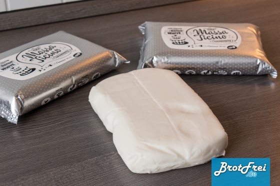 Jetzt geht es ans Eingemachte, die Fondantdecke. Die Fondantdecke habe ich aus 3 kg weißem Tropical-Fondant gemacht. Ich verwende immer Tropical Fondant, weil es damit keine Probleme gibt wenn man die Torte im Kühlschrank lagert. Ich kann dir hier das Massa Ticino oder das weiße Fondant von Funcakes empfehlen.