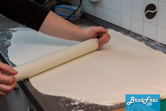 Achtung, du wirst hier für das Ausrollen viel Kraft benötigen. Also stell dich schon mal darauf ein und besorg dir eventuell eine Fußbank oder dergleichen, damit du die optimale Arbeitshöhe hast.