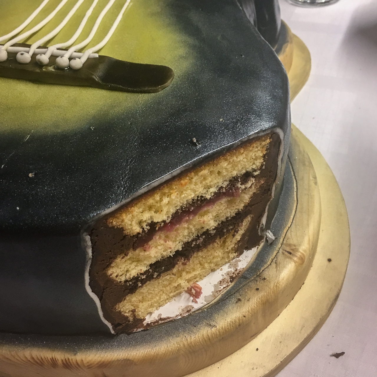 Nicht bloß das die Gitarren-Torte cool ausgesehen hat, Sie hat auch noch echt lecker geschmeckt. Nicht so süß und nicht zu cremig.